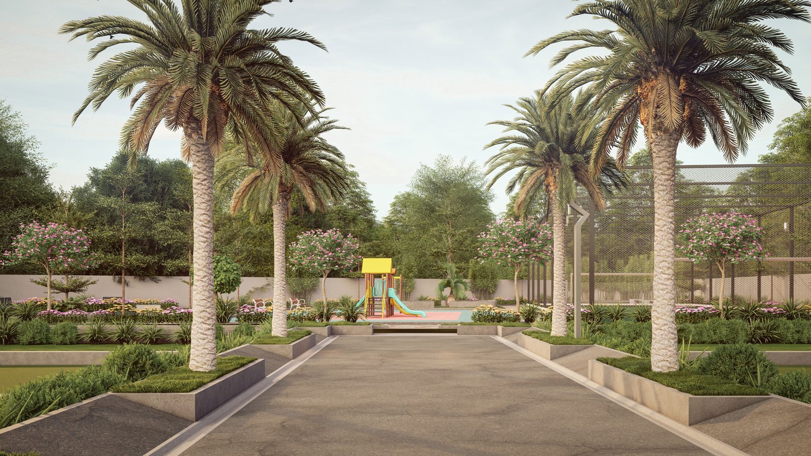 Durable and smooth pathways enhancing accessibility within the community.